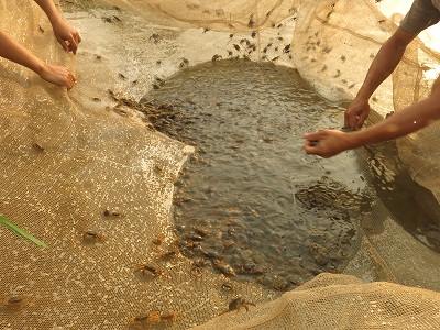 Ngày 18/5/2016, Ban Chủ nhiệm đề tài “Nghiên cứu xây dựng quy trình nuôi thương phẩm rạm (Varuna litterata) bằng nguồn giống tự nhiên đạt năng suất cao tại huyện Kim Sơn, tỉnh Ninh Bình” đã tiến hành tổ chức thả giống rạm cho 03 hộ dân nuôi rạm tại thị trấn Bình Minh và xã Kim Mỹ – Kim Sơn – Ninh Bình. Tới tham dự buổi thả rạm giống có đại diện cán bộ Sở Khoa học Công nghệ Ninh Bình; Trạm Bảo vệ Nguồn lợi Thủy sản Kim Sơn (Chi cục Thủy sản Ninh Bình), Phòng Khoa học, Hợp tác Quốc tế và Đào tạo (Viện nghiên cứu Hải sản); đại điện hộ dân nuôi rạm cùng với bà con nhân dân quanh vùng nuôi.
