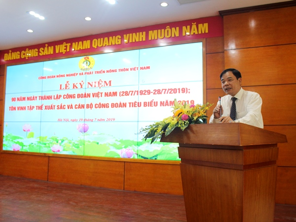 Phát biểu tại Lễ Kỷ niệm, Bộ trưởng Bộ NN-PTNT Nguyễn Xuân Cường cho biết: Lịch sử Công đoàn Việt Nam vô cùng hào hùng, gắn với những chiến công oanh liệt, kể cả trong giai đoạn cứu nước và trong giai đoạn kiến quốc. Điều rất phấn khởi là trong những chặng đường đó, thì dấu ấn, vai trò, ý nghĩa, vị thế của khu vực nông nghiệp mà trong đó đại diện người lao động là công đoàn rất rõ nét. Ngành nông nghiệp, nông dân, nông thôn có vai trò hết sức quan trọng trong sự nghiệp phát triển kinh tế nước nhà. Gần 65% trong tổng số 96 triệu người Việt Nam sống ở khu vực nông thôn. Trong thời gian dài nữa, vai trò nông nghiệp, nông dân, nông thôn vẫn có ý nghĩa hết sức cho sự nghiệp phát triển kinh tế đất nước nói chung và các nhiệm vụ khác của đất nước.