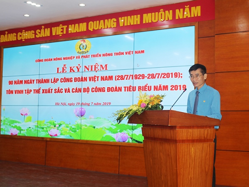 Phát biểu tại Lễ Kỷ niệm, Phó Chủ tịch Tổng Liên đoàn Lao động Việt Nam Trần Văn Thuật tuyên dương, đánh giá cao những kết quả Công đoàn ngành NN-PTNT đạt được trong thời gian vừa qua, Tổng Liên đoàn Lao động Việt Nam cũng nhiệt liệt tuyên dương, tôn vinh 26 tập thể xuất sắc, 64 cá nhân tiêu biểu công đoàn ngành NN-PTNT giai đoạn 2016 – 2018.