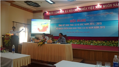 Ngày 2/4/2015 tại Thừa Thiên Huế, Bộ Nông nghiệp và Phát triển Nông thôn đã phối hợp với Uỷ ban nhân dân tỉnh Thừa Thiên Huế tổ chức "Hội nghị tổng kết khai thác cá vụ Bắc năm 2014-2015 kế hoạch triển khai khai thác cá vụ nam 2015”. Hội nghị dưới sự chủ trì của ông Vũ Văn Tám, Thứ trưởng Bộ Nông nghiệp và Phát triển Nông thôn và ông Phan Ngọc Thọ, Phó chủ tịch thường trực UBND tỉnh Thừa Thiên – Huế. Hội nghị đã có sự tham dự của Tổng cục Thuỷ sản (Vụ Khai thác thuỷ sản, Vụ Kế hoạch – Tài chính, Trung tâm Thông tin thuỷ sản, Trung tâm Đăng kiểm tàu cá), các đơn vị thuộc Bộ Nông nghiệp và Phát triển Nông thôn (Viện Nghiên cứu Hải sản, Viện Kính tế và Quy hoạch thuỷ sản), các Bộ Tài chính, Quốc phòng, Công An, các sở Nông nghiệp, Chi cục Khai thác và Bảo vệ nguồn lợi Thủy sản 28 tỉnh/thành phố ven biển.