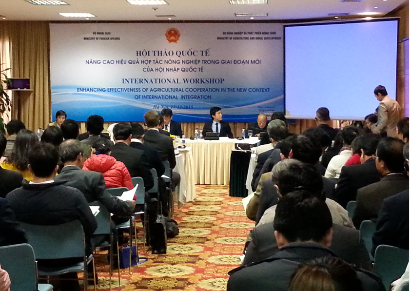 | Ngày 17/12/2015, tại Hà Nội, Bộ Nông nghiệp và Phát triển nông thôn phối hợp Bộ Ngoại giao tổ chức Hội thảo “Nâng cao hiệu quả hợp tác nông nghiệp trong giai đoạn mới của hội nhập quốc tế”. Đánh giá về những kết quả của ngành nông nghiệp đạt được trong thời gian qua, Thứ trưởng Bộ Nông nghiệp và Phát triển nông thôn Lê Quốc Doanh cho biết, sau gần 30 năm đổi mới, nông nghiệp Việt Nam đã đóng góp một phần quan trọng trong quá trình phát triển kinh tế - xã hội của đất nước. Sản xuất nông nghiệp liên tục tăng trưởng và duy trì tốc độ ổn định từ 3%-4%/năm. Xuất khẩu nông, lâm, thủy sản luôn suất siêu, góp phần cân đối cán cân thương mại và liên tục tăng cao từ 4,2 tỷ USD năm 2000 lên 30,8 tỷ USD năm 2014. |