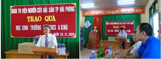 Tại xã A Xing, đoàn được đại diện UBND xã, Hiệu trưởng, ban giám hiệu nhà trường và cá em học sinh vui mừng đón tiếp. Đoàn Viện nghiên cứu Hải sản đã trao tặng 100 áo khoác mùa đông, 1000 vở viết, 100 áo mưa, 25 bao quần áo và nhiều đồ dùng học tập khác…