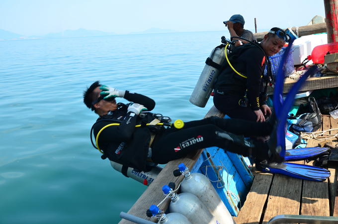 Tư thế tiếp nước của các thợ lặn. Ảnh: Dương Đình Tường.