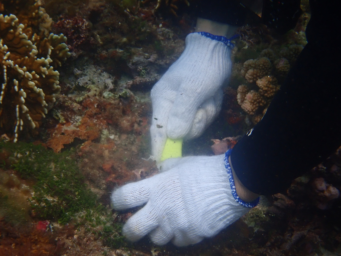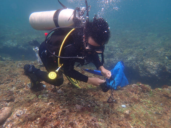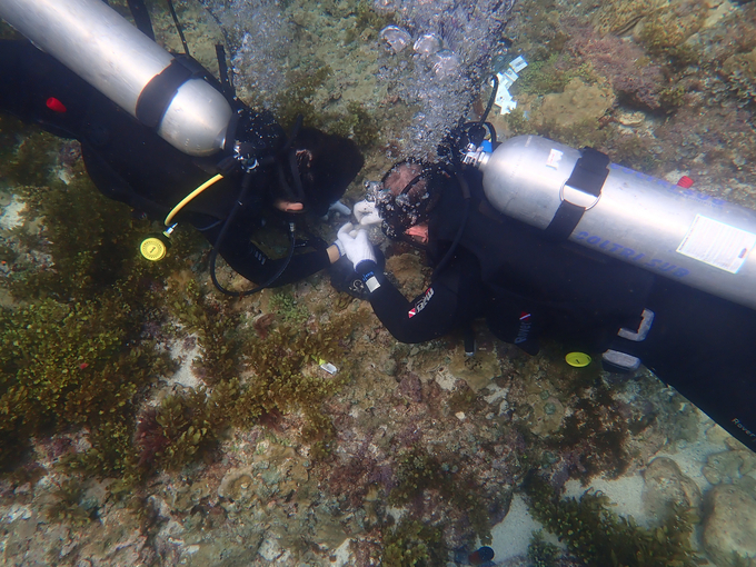 Nhà khoa học đang tác nghiệp dưới nước. Ảnh: Viện Nghiên cứu Hải sản.