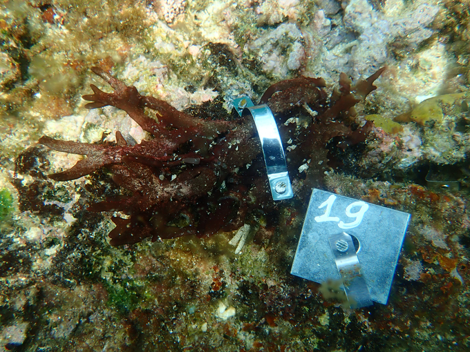 Lường trước những tình huống đó, các nhà khoa học đã lựa chọn nền đáy rạn san hô chết để đóng đinh ghim, buộc giống xuống bởi chúng có độ ráp, độ gồ ghề cao, phù hợp với sinh thái phân bố của rong câu chân vịt;