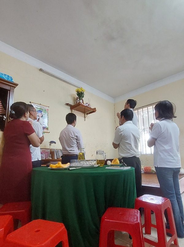 Tiếp sau buổi lễ gặp mặt tri ân, Đoàn CBVC Viện nghiên cứu Hải sản do ông Nguyễn Viết Nghĩa làm trưởng đoàn đã đến thăm và tặng quà cho gia đình đồng chí Nguyễn Duy Thành, Phó Giám đốc Trung tâm Dự báo ngư trường khai thác hải sản, là con liệt sĩ Nguyễn Duy Quế.