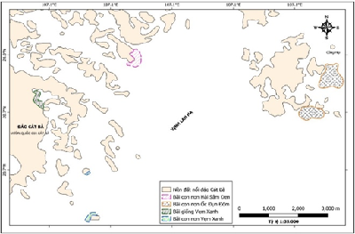 Hình 1. Bản đồ khoanh vùng bãi giống cần bảo vệ tại Bạch Long Vĩ
