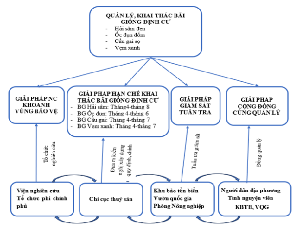 Dựa trên Sơ đồ quản lý bãi giống định cư, hệ thống quản lý hiệu quả được xây dựng trên nền tảng hợp tác chặt chẽ giữa các cơ quan quản lý, các đơn vị nghiên cứu, cộng đồng địa phương và các tổ chức bảo tồn. Sự phối hợp này đảm bảo việc bảo vệ, khai thác và phát triển bền vững các bãi giống định cư, đồng thời nâng cao nhận thức và trách nhiệm của các bên liên quan trong việc duy trì nguồn lợi thủy sản và bảo vệ môi trường biển.