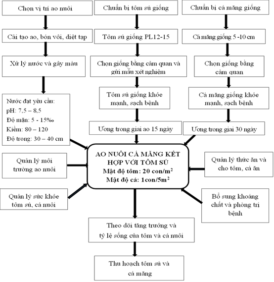 Hình 3. Quy trình kỹ thuật nuôi cá măng kết hợp với tôm sú trong ao đất tại Bến Tre