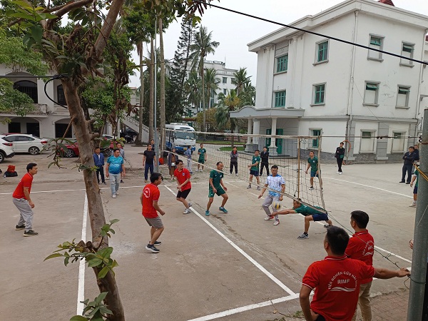 Phần thi đấu bóng chuyền giữa Viện NCHS và Trường Cao đẳng Thủy sản và Công nghệ Thực phẩm