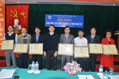 Hội nghị cũng được nghe đồng chí Trần Quốc Tuyển trình bày  Báo cáo công tác thi đua năm 2016 đọc công bố Quyết định khen thưởng cho các tập thể và cá nhân đạt thành tích xuất sắc trong năm 2016: Trao tặng Bằng khen Bộ trưởng cho 05 cá nhân; 02 đơn vị lập thành tích xuất sắc trong giai đoạn 2014-2015; và 03 cá nhân và tập thể Viện nghiên cứu Hải sản do lập thành tích xuất sắc trong công tác điều tra nguyên nhân cá chết  4 tỉnh Miền Trung năm 2016; Công bố Quyết định khen thưởng của Công đoàn;  đồng chí Nguyễn Văn Nguyên, Phó Viện trưởng, Chủ tịch Công đoàn Viện kiểm điểm việc thực hiện Nghị quyết Hội nghị CBVC năm 2016;  Đồng chí Nguyễn Công Thành, Trưởng ban Thanh tra Nhân dân báo cáo công tác thanh tra nhân dân năm 2016 và chương trình công tác năm 2017.
