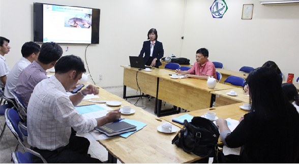 ThS. Nguyễn Thị Phương Thảo trình bày tài liệu: “Quy trình nuôi thương phẩm cá hồng mỹ (Sciaenops ocellatus Linnaeus, 1766) trong lồng bè bằng thức ăn tổng hợp”. ThS. Nguyễn Thị Kim Vân trình bày 02 tài liệu: “Quy trình nuôi tôm sú (Penaeus monodon) kết hợp với cá măng (Chanos chanos) trong ao đất”, “Quy trình sinh sản và ương nuôi cá chẽm (Lates calcarifer) quy mô nông hộ”. Đồng thời Hội đồng cũng xem 03 video clip giới thiệu về các quy trình trên.