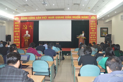 Phó Viện trưởng Nguyễn Văn Nguyên trình bày báo cáo tại Hội nghị