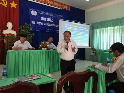 - ThS. Nguyễn Hữu Thanh - Trung tâm giống Quốc gia Hải sản Nam bộ trình bày báo cáo “Ứng dụng công nghệ cao trong sản xuất giống cá biển và nguồn cung cấp giống cá biển trên địa bàn tỉnh”: báo cáo cho thấy vấn đề cận huyết trong đàn cá bố mẹ nên dẫn đến sản xuất giống kém chất lượng; không xét nghiệm giống trước khi nuôi nên thường xuyên bị dịch bệnh; sản xuất giống trong nước không đáp ứng đủ nhu cầu nên phải nhập giống từ nước ngoài về mà con giống không đảm bảo chất lượng.