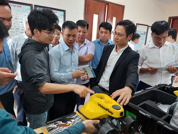 Các nhà khoa học trao đổi về việc sử dụng thiết bị ngầm điều khiển từ xa (ROV) trong thu mẫu đa dạng sinh học ở gò đồi ngầm
