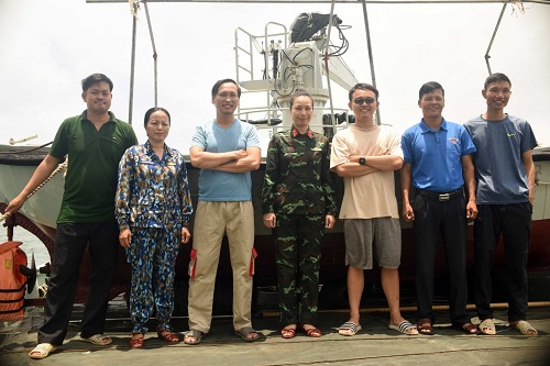 Hình 1: Cán bộ nghiên cứu Viện Nghiên cứu Hải sản chụp ảnh cùng cán bộ của 03 đoàn khảo sát trên tàu HQ630