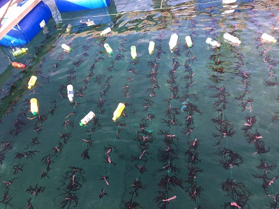 Hình ảnh mô hình nuôi rong sụn trong ô lồng lưới tại Phú Quý