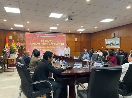 Tại buổi bảo vệ luận án, NCS Nguyễn Công Thành đã trình bày một cách hệ thống, logic và khoa học những kết quả nghiên cứu trong luận án của mình. Theo đánh giá của Hội đồng, luận án là một công trình khoa học được thực hiện một cách nghiêm túc, bài bản, có nhiều đóng góp mới có giá trị khoa học và ý nghĩa thực tiễn cao. Những đóng góp mới của luận án: 1) Đã xác định được mức độ và biến động hàm lượng Cadimi (Cd) trong trầm tích lơ lửng và sinh vật phù du ở vùng ven biển Bình Thuận. Lần đầu tiên công bố về dạng liên kết của Cd trong trầm tích biển ở vùng nuôi, thu hoạch động vật thân mềm hai mảnh vỏ; 2) Đã xác định được mức độ, hệ số tích tụ Cd trong tổng mô, theo kích thước chiều cao vỏ và theo bộ phận (hệ tiêu hóa, màng áo, mang, chân) của nghêu lụa (Paphia undulata); mối liên hệ với Cd trong các hợp phần môi trường. Trong thời gian nghiên cứu, mức độ tích tụ Cd trong nghêu lụa vẫn nằm trong giới hạn an toàn thực phẩm; 3) Đã bước đầu xác định được sự tích tụ Cd trong nghêu lụa ở vùng ven biển Bình Thuận chủ yếu từ nguồn thức ăn. Đề tài luận án cũng đã công bố 05 bài báo đăng trên tạp chí khoa học uy tín trong nước và quốc tế. Các bài báo công bố của NCS có chất lượng tốt và phản ánh trung thực các kết quả của đề tài luận án.