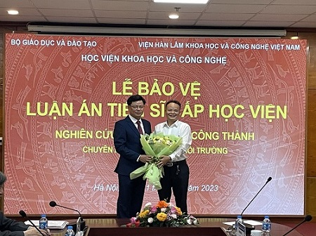 Giám đốc Học viện, Chủ tịch Hội đồng chúc mừng tập thể giáo viên hướng dẫn và nghiên cứu sinh. TS. Nguyễn Khắc Bát thay mặt Cơ quan công tác của nghiên cứu sinh cảm ơn Học viện, Khoa Công nghệ Môi trường, Hội đồng và tập thể thầy hướng dẫn đã tạo điều kiện thuận lợi và giúp đỡ nghiên cứu sinh trong suốt quá trình học tập, nghiên cứu, hoàn thành và bảo vệ luận án thành công.