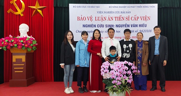 Sau phần trình bày, nhận xét, đánh giá của các thành viên Hội đồng và phần trả lời câu hỏi, Hội đồng chấm luận án đã họp kín để tiến hành đánh giá luận án. Hội đồng đã thông qua nghị quyết đánh giá luận án với 7/7 phiếu nhất trí tán thành, trong đó 3/7 phiếu đánh giá xuất sắc. PGS.TS. Nguyễn Xuân Huấn, Chủ tịch Hội đồng đã thay mặt Hội đồng chúc mừng NCS. Nguyễn Văn Hiếu đã bảo vệ thành công luận án, chúc mừng tập thể thầy hướng dẫn khoa học và Viện nghiên cứu Hải sản đã có thêm một tân Tiến sĩ.
