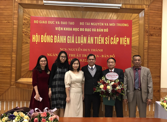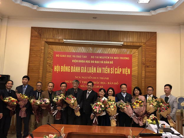 Trong niềm vui và xúc động, NCS Nguyễn Duy Thành đã gửi lời cảm ơn chân thành tới các thành viên của Hội đồng đã có nhận xét, góp ý hết sức sâu sắc để NCS có thể tiếp tục hoàn thiện luận án của mình. NCS gửi lời tri ân sự dìu dắt, chỉ bảo tận tình của tập thể giáo viên hướng dẫn, lãnh đạo Viện Khoa học Đo đạc và Bản đồ, lãnh đạo Viện nghiên cứu Hải sản, đồng nghiệp, bạn bè và đặc biệt là gia đình – nơi luôn là hậu phương, là nguồn động viên và cổ vũ lớn lao để NCS có thể bảo vệ thành công luận án.