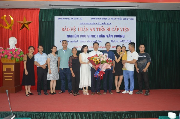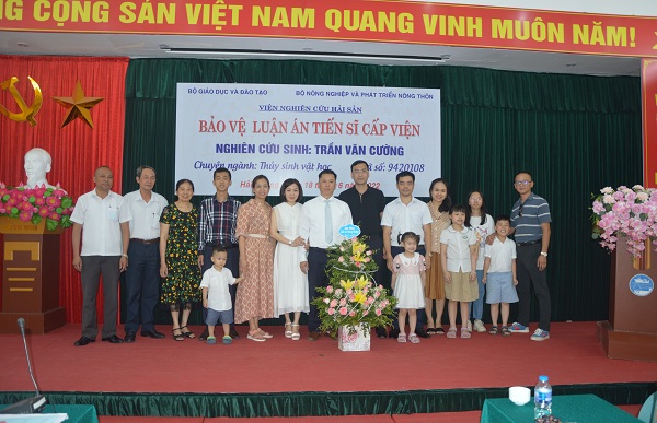 Trong niềm vui và xúc động, NCS Trần Văn Cường đã gửi lời cảm ơn chân thành tới các thành viên Hội đồng đã có những nhận xét, góp ý hết sức sâu sắc để NCS có thể tiếp tục sửa chữa và hoàn thiện hơn nữa luận án của mình. NCS đã gửi lời tri ân đến sự tận tụy chỉ bảo, sự dìu dắt tận tình của tập thể thầy hướng dẫn khoa học, sự giúp đỡ quý báu của Ban lãnh đạo Viện nghiên cứu Hải sản, Hội đồng khoa học và đào tạo, Trưởng phòng và các cán bộ khoa học của Phòng Nghiên cứu Nguồn lợi hải sản, các đồng nghiệp, bạn bè và đặc biệt là bố mẹ, vợ, con, gia đình, họ hàng - nơi luôn là hậu phương vững chắc, là nguồn động viên, cổ vũ lớn lao để NCS có cơ hội được học tập, nghiên cứu và bảo vệ thành công luận án.