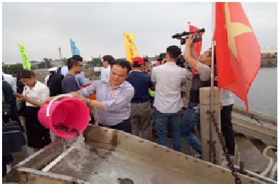 Viện trưởng Viện nghiên cứu hải sản thả cá giống tại buổi Lễ