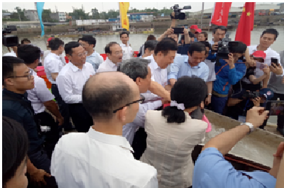Lãnh đạo ngành nông nghiệp 2 nước Việt Nam – Trung Quốc khai mạc và thả cá tại buổi lễ.
