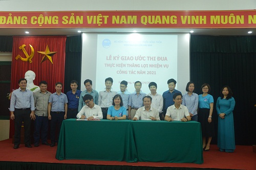 Tiếp theo chương trình là Lễ ký Giao ước thi đua giữa các đơn vị trong Viện. Tại buổi lễ, Trưởng các đơn vị đã cho thấy quyết tâm thực hiện tốt nội dung cam kết và ký giao ước thi đua trước Lãnh đạo Viện.