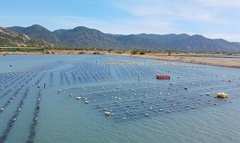 Mô hình trồng rong nuôi mô chất lượng cao tại vùng ven biển Cà Ná, tỉnh Ninh Thuận. Ảnh: Đinh Mười.