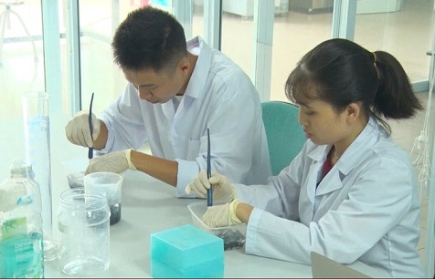 Các nhà khoa học tại Viện nghiên cứu Hải sản (RIMF) nuôi cấy mô rong biển Kappaphycus alvarezii. Ảnh: Đinh Mười.