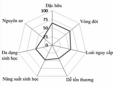 Trong 7 tiêu chí đánh giá lựa chọn vùng EBSA, tiêu chí tính nguyên sơ ít bị tác động của con người được đánh giá thấp nhất (31%) so với các tiêu chí khác (51-70%). Hai tiêu chí tính đặc hữu và tính liên quan đến vòng đời của loài được đánh giá cao trong việc xét lựa chọn vùng EBSA (Hình 2). Như vậy có thể nhận thấy, các vùng EBSA tập trung nhiều vào những sinh cảnh đặc thù liên quan đến vòng đời của các loài và nơi cư trú quan trọng của các loài quý hiếm, nguy cấp.