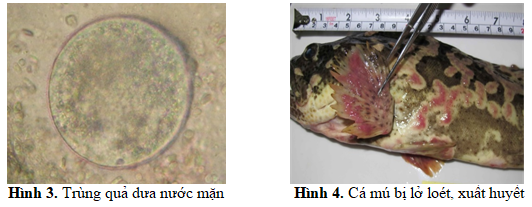 Mẫu cá ở khu vực cá chết có tỷ lệ nhiễm ký sinh trùng và vi khuẩn cao: Các mẫu cá mú, cá chẽm và cá chim ở khu vực xẩy ra hiện tượng cá chết đều bị nhiễm các loài ký sinh trùng quả dưa nước mặn (Cryptocaryon irritans), sán lá đơn chủ (Pseudorhabdorynchus sp.) và rận cá (Isopoda sp.). Trong đó 100% mẫu cá đều nhiễm sán lá đơn chủ với cường độ cao. Tỷ lệ và cường độ nhiễm ký sinh trùng quả dưa nước mặn và rận cá thấp hơn (67% và 50%). Kết quả phân tích cũng cho thấy 100% mẫu cá ở khu vực cá chết có dấu hiệu nhiễm khuẩn (lở loét, xuất huyết) và dương tính với vi khuẩn Vibrio gây bệnh như V. damselea, V. anguilarum, V. marynus, V. vulfinicus.