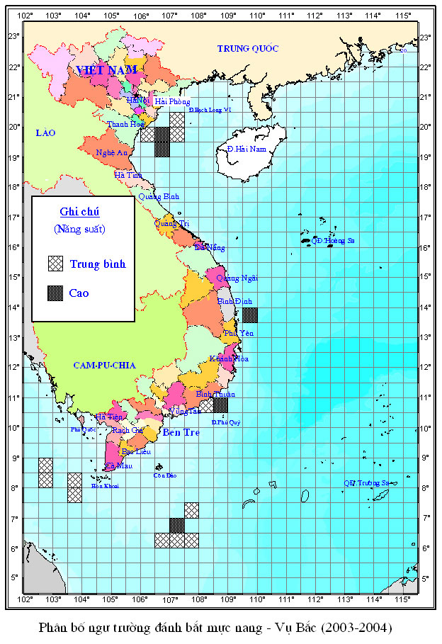 Trang nhất/ Dự báo khai thác theo đối tượng Mực nang, Vụ Bắc, Cả vụ năm 2003 Mùa vụ: Vụ Bắc (Cả vụ) | Năm dự báo: 2003 | Tháng dự báo: 12/2003 Đối tượng dự báo: Mực nang Cơ quan dự báo: Viện nghiên cứu Hải sản