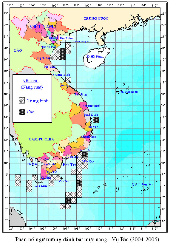 Trang nhất/ Dự báo khai thác theo đối tượng Mực nang, Vụ Bắc, Cả vụ năm 2004 Mùa vụ: Vụ Bắc (Cả vụ) | Năm dự báo: 2004 | Tháng dự báo: 12/2004 Đối tượng dự báo: Mực nang Cơ quan dự báo: Viện nghiên cứu Hải sản