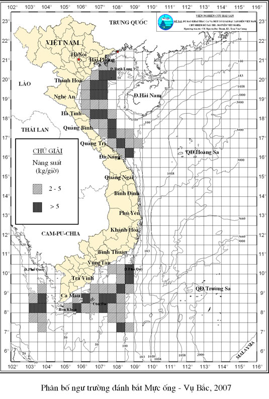 Trang nhất/ Dự báo khai thác theo đối tượng Mực ống, Vụ Bắc, Cả vụ năm 2007 Mùa vụ: Vụ Bắc (Cả vụ) | Năm dự báo: 2007 | Tháng dự báo: 12/2007 Đối tượng dự báo: Mực ống Cơ quan dự báo: Viện nghiên cứu Hải sản