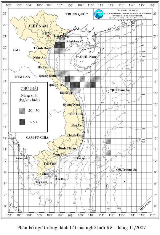 Trang nhất/ Dự báo khai thác theo nghề Rê, Vụ Bắc, 11 năm 2007 Mùa vụ: Vụ Nam (11) | Năm dự báo: 2007 | Tháng dự báo: 11/2007 Nghề: Rê Cơ quan dự báo: