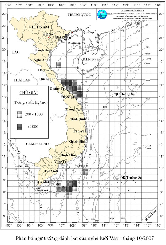 Trang nhất/ Dự báo khai thác theo nghề Vây, Vụ Bắc, 10 năm 2007 Mùa vụ: Vụ Nam (10) | Năm dự báo: 2007 | Tháng dự báo: 10/2007 Nghề: Vây Cơ quan dự báo: