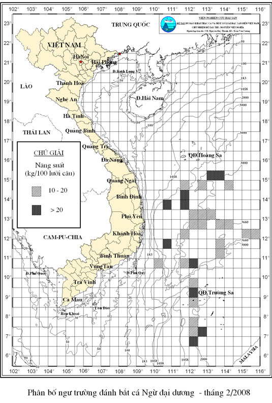 Trang nhất/ Dự báo khai thác theo nghề Câu vàng cá ngừ, Vụ Bắc, 02_2008 năm 2007 Mùa vụ: Vụ Nam (02_2008) | Năm dự báo: 2008 | Tháng dự báo: 02/2008 Nghề: Câu cá ngừ đại dương Cơ quan dự báo: