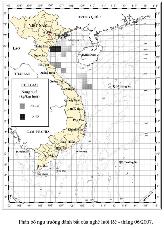 Trang nhất/ Dự báo khai thác theo nghề Rê, Vụ Nam, 06 năm 2007 Mùa vụ: Vụ Nam (06) | Năm dự báo: 2007 | Tháng dự báo: 06/2007 Nghề: Rê Cơ quan dự báo: