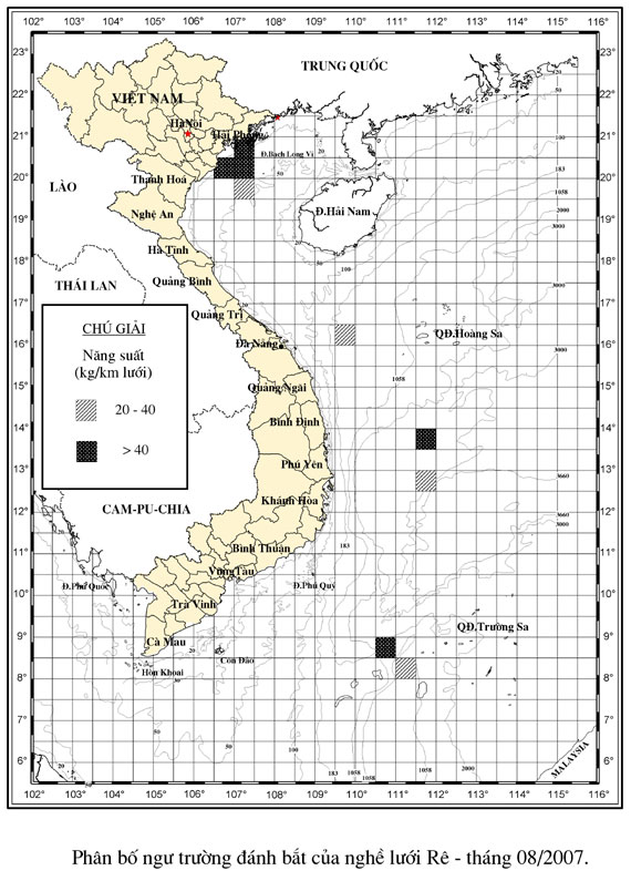 Trang nhất/ Dự báo khai thác theo nghề Rê, Vụ Nam, 08 năm 2007 Mùa vụ: Vụ Nam (08) | Năm dự báo: 2007 | Tháng dự báo: 08/2007 Nghề: Rê Cơ quan dự báo:
