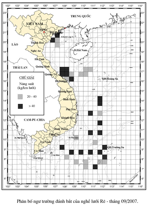 Trang nhất/ Dự báo khai thác theo nghề Rê, Vụ Nam, 09 năm 2007 Mùa vụ: Vụ Nam (09) | Năm dự báo: 2007 | Tháng dự báo: 09/2007 Nghề: Rê Cơ quan dự báo: