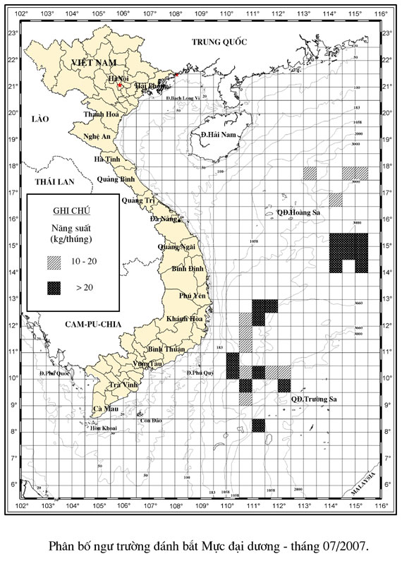 Trang nhất/ Dự báo khai thác theo nghề Câu tay mực, Vụ Nam, 07 năm 2007 Mùa vụ: Vụ Nam (07) | Năm dự báo: 2007 | Tháng dự báo: 07/2007 Nghề: Câu tay mực Cơ quan dự báo: