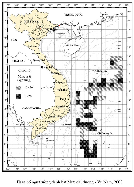 Trang nhất/ Dự báo khai thác theo nghề Câu tay mực, Vụ Nam, Cả vụ năm 2007 Mùa vụ: Vụ Nam (Cả vụ) | Năm dự báo: 2007 | Tháng dự báo: 12/2007 Nghề: Câu tay mực Cơ quan dự báo: