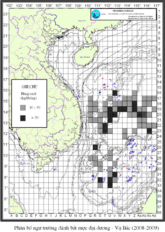 Trang nhất/ Dự báo khai thác theo nghề Câu tay mực, Vụ Bắc, Cả vụ năm 2008 Mùa vụ: Vụ Nam (Cả vụ) | Năm dự báo: 2008 | Tháng dự báo: 12/2008 Nghề: Câu tay mực Cơ quan dự báo: