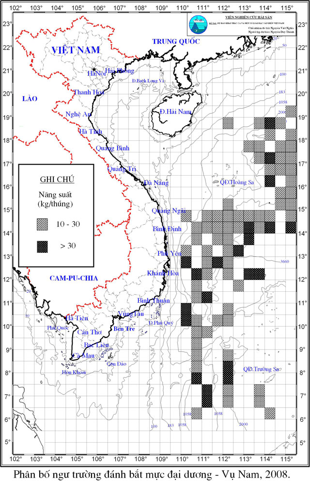 Trang nhất/ Dự báo khai thác theo đối tượng Mực xà, Vụ Nam, Cả vụ năm 2008 Mùa vụ: Vụ Nam (Cả vụ) | Năm dự báo: 2008 | Tháng dự báo: 12/2008 Đối tượng dự báo: Mực xà Cơ quan dự báo: Viện nghiên cứu Hải sản