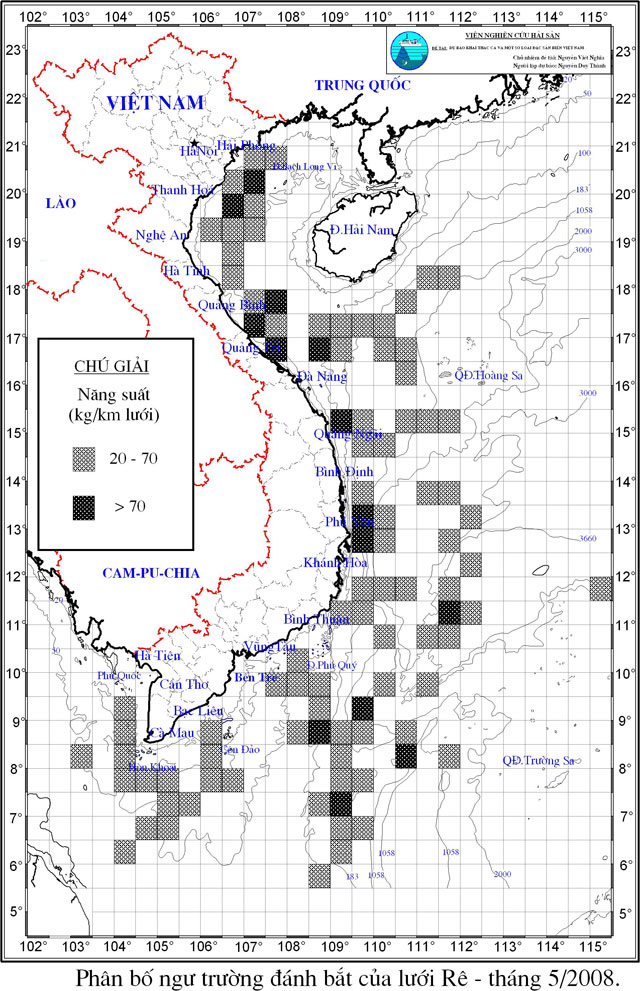 Trang nhất/ Dự báo khai thác theo nghề Rê, Vụ Nam, 05 năm 2008 Mùa vụ: Vụ Nam (05) | Năm dự báo: 2008 | Tháng dự báo: 05/2008 Nghề: Rê Cơ quan dự báo: