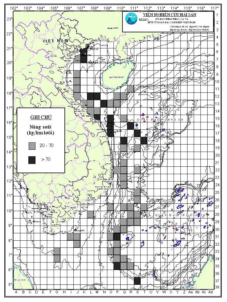 Đối tượng khai thác Trường nhiệt độ nước biển mặt (191) Cá nổi nhỏ (39) Trường dòng chảy tầng mặt (160) Cá ngừ (1) Cá ngừ đại dương (154) Cá ngừ vằn (115) Cá ngừ vây vàng (1) Mực ống (39) Mực xà (5) Mực nang (38) Khác (19)