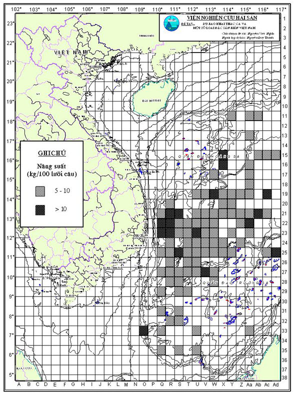 Đối tượng khai thác Trường nhiệt độ nước biển mặt (191) Cá nổi nhỏ (39) Trường dòng chảy tầng mặt (160) Cá ngừ (1) Cá ngừ đại dương (154) Cá ngừ vằn (115) Cá ngừ vây vàng (1) Mực ống (39) Mực xà (5) Mực nang (38) Khác (19)