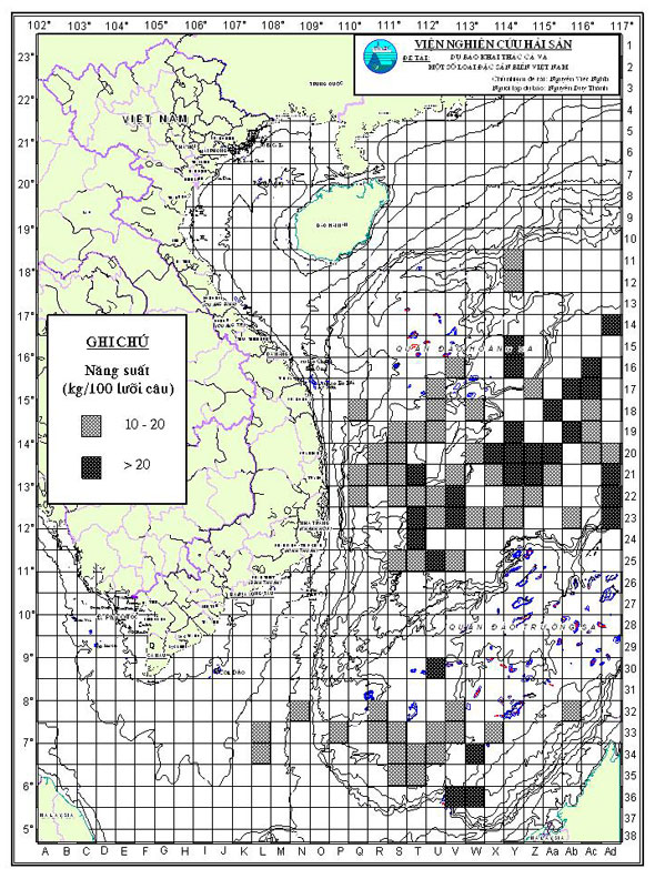 Đối tượng khai thác Trường nhiệt độ nước biển mặt (191) Cá nổi nhỏ (39) Trường dòng chảy tầng mặt (160) Cá ngừ (1) Cá ngừ đại dương (154) Cá ngừ vằn (115) Cá ngừ vây vàng (1) Mực ống (39) Mực xà (5) Mực nang (38) Khác (19)